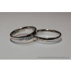 Snubní prsteny v bílém, žlutém nebo červeném (růžovém) zlatě s jednou polovinou v lesku a druhou v matu s lesklou vlnovkou, která je v dámském modelu ozdobena 5 kameny různých velikostí. Povrchy lze různě upravit.